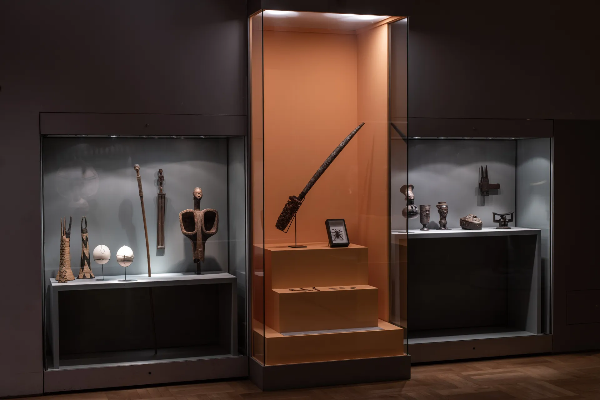 Die Bandbreite reicht von höfischer Kunst aus westafrikanischen Königreichen über imponierende Kraftfiguren aus der Kongoregion und Jahrhunderte alten filigranen Elfenbeinschnitzereien aus Westafrika bis hin zu faszinierenden Ahnenskulpturen oder Masken von Mali bis Tansania. Zu sehen ist auch der bekannte Verandapfosten des 1938 verstorbenen Meisterschnitzers Olowe aus Ise aus dem heutigen Nigeria, der den Stararchitekten David Adjayi für das Gebäude des National Museums of African American History and Culture in Washington inspirierte. Auch Werke, die den berühmten »Blauer Reiter«-Künstlern Franz Marc und Wassily Kandinsky Inspiration verliehen, finden Sie in der Ausstellung.
