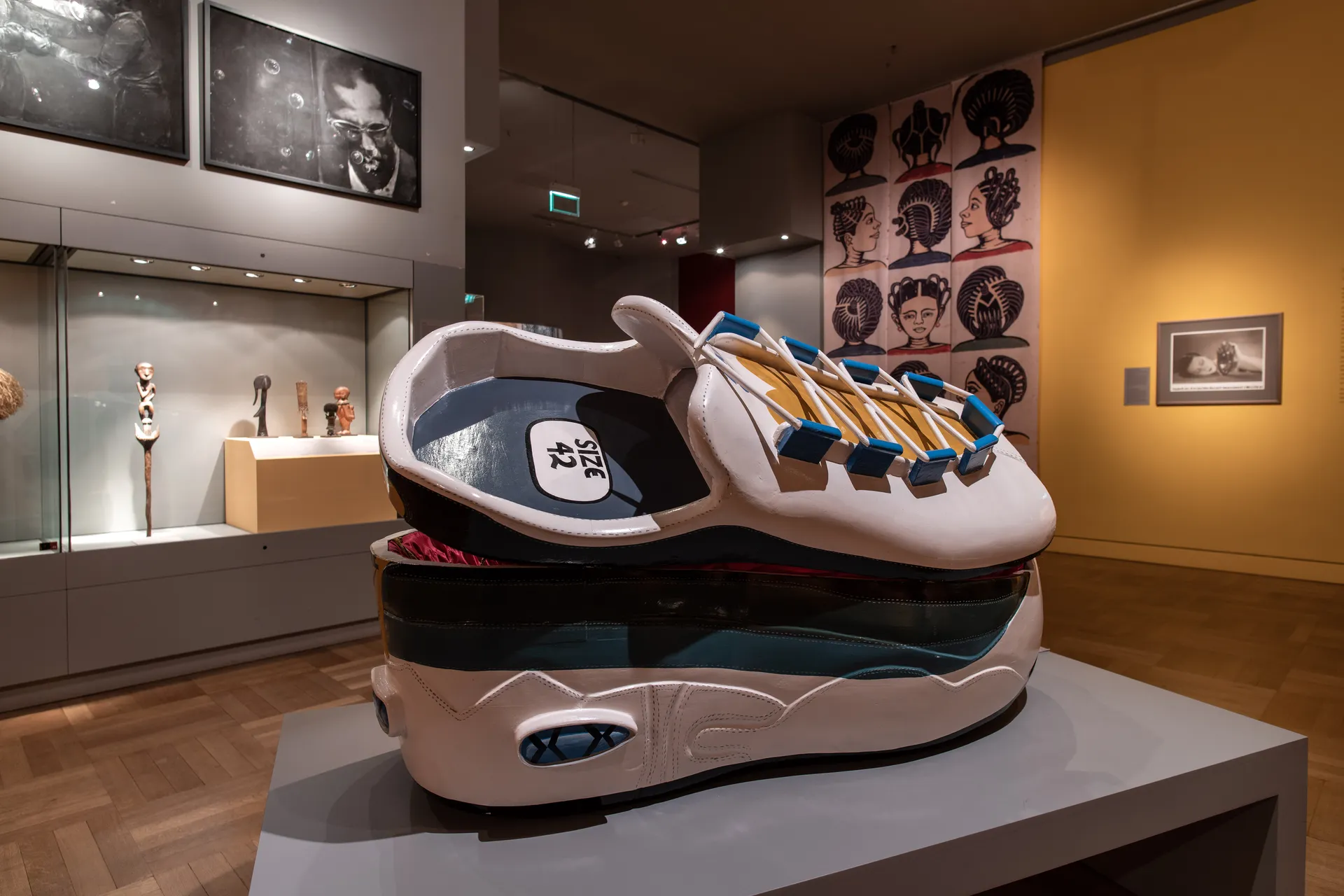 Einen Schwerpunkt der Ausstellung bilden Werke international bedeutender Gegenwartskünstler wie Romuald Hazoumè, El Loko, Pieter Hugo, Ransome Stanley oder der Keramikerin Seyni Awa Camara. Große Anziehungskraft besitzt ein Sarg in Form eines Sportschuhs des ghanaischen Künstlers Paa Joe. Diese Arbeiten sind gleichfalls kritische Einmischungen in die Ausstellung und werfen Fragen auf nach den Wechselbeziehungen zwischen Afrika und dem Globalen Norden, nach Ausbeutung, Rassismus, Kolonialismus und Neo-Kolonialismus.