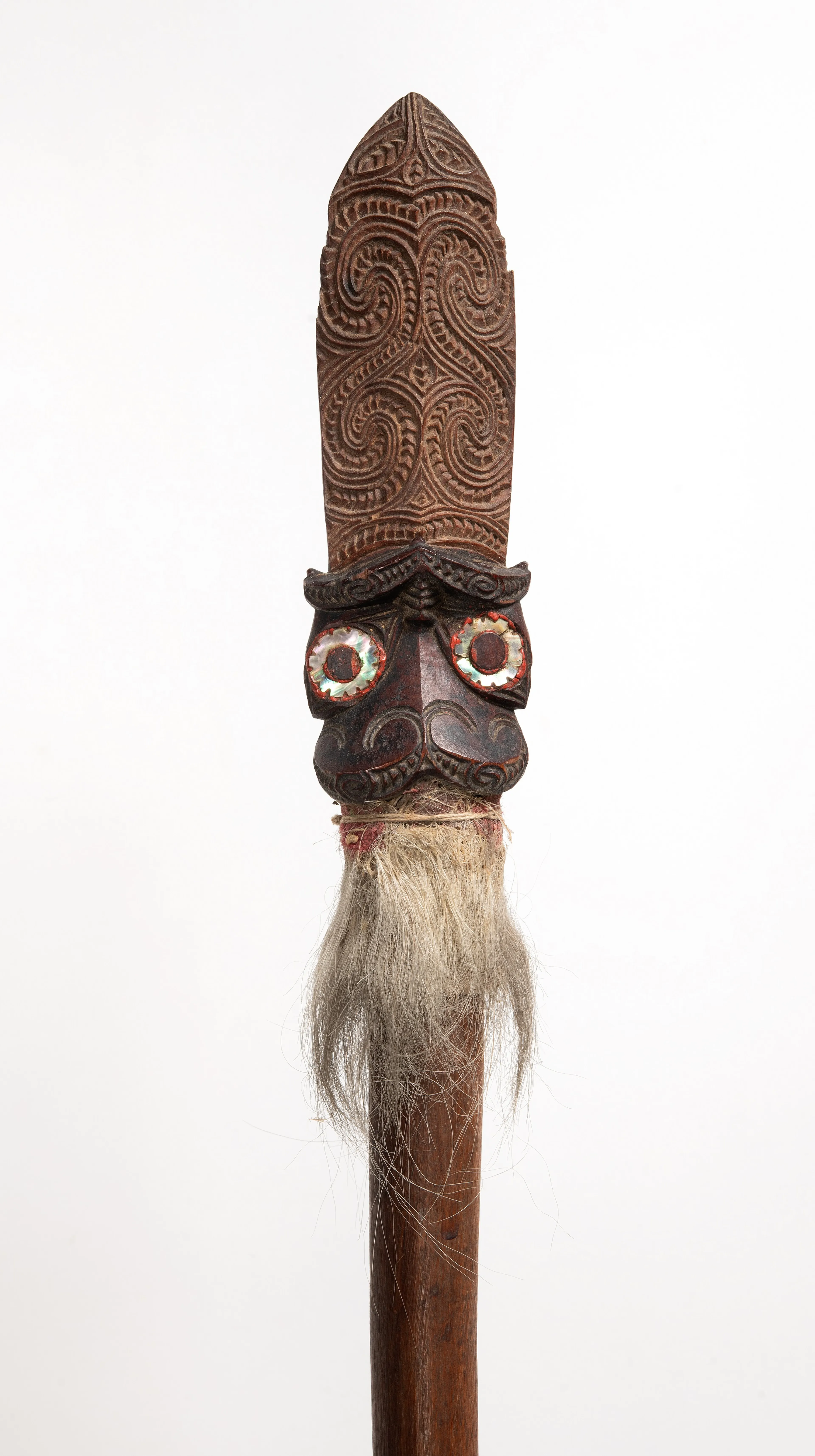 Im Weltbild der Māori tragen alle Künste eine immerwährende Beziehung zwischen Vergangenheit und Gegenwart in sich: So gelten auch viele Schnitzwerke als beseelt und stehen in Verbindung mit den Ahnen. Daher sollten die Nachkommen der ursprünglichen Hersteller oder Besitzer diese so wichtige Verbindung erneuern können. He Toi Ora bedeutet: eine lebendige Kunst. Abb.: © Museum Fünf Kontinente, Foto: Nicolai Kästner